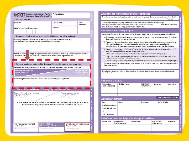 Practise Pointers • • • • Timing is important- process may be started in an emergency (not ideal!) The form prompts (rather than replaces) the conversation Involve key individuals Context Need to be explicit in communication at times Check understanding – “teachback” Individualised – Shared decision-making (Team talk / Options talk / Decision talk) Need to be competent in assessing capacity (document it fully) Need to understand risks/benefits of potential intervention Important to review in context of scenario Form summarises conversation(s) - it doesn’t replace full documentation Consider the practicalities of delivering on preferences e. g. to stay at home Advise patient/relatives how information will be shared with other agencies