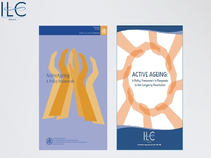 Marco Político do Envelhecimento Ativo “O processo de otimização de oportunidades para a saúde, a aprendizagem ao longo da vida, a participação e a segurança para melhorar a qualidade de vida à medida que as pessoas envelhecem. ” OMS (2002), ILC-BR (2015)