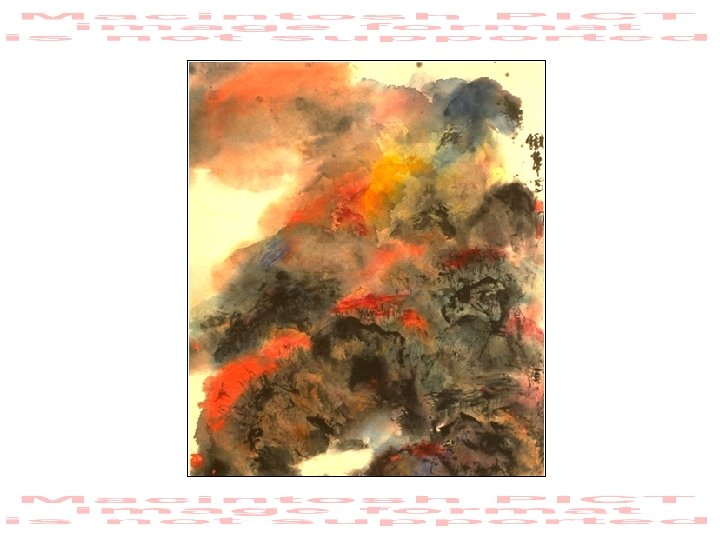 “Landscape in Colour” • watercolour and ink on rice paper, • • 1995. The artist says this painting reflects his observations while driving to Canberra, as seen in his car’s rear view mirror - providing a unique perspective on the passing scenery. Tie Huang Collection