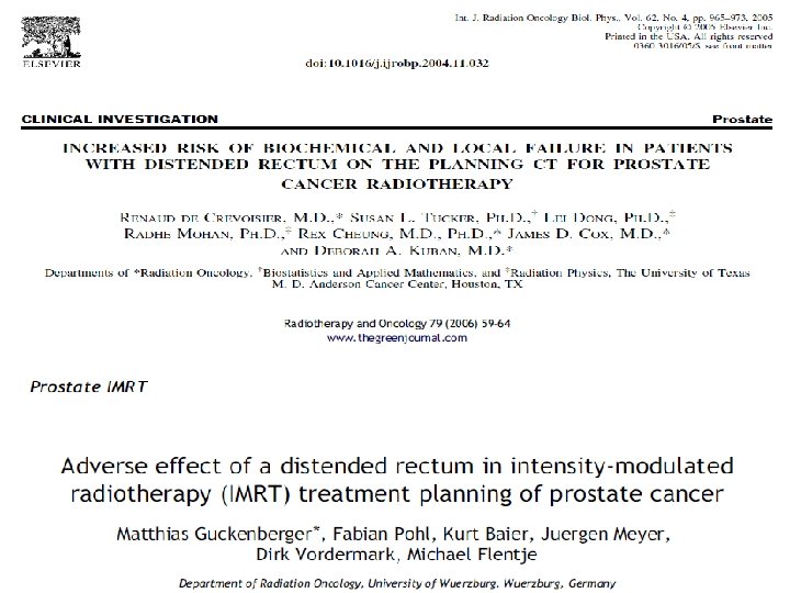 Pelvic tumor Presence of a distended rectum in the planning CT-scan. At the 1°and 3°tests the rectum is again distended by gas and R ratios are within the tolerance, but at the 2°test the pocket size decreased and R= 0. 907 this means dose variations estimated in 10%. R= 0. 907