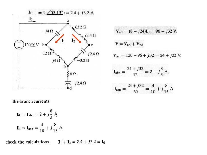 Example 9. 7 Combining Impedances in series and in Parallel (a) Construct the frequency-domain (phasor, complex) equivalent circuit ? (b) Find the steady state expressions for v, i 1, i 2, and i 3 ? ? (a)