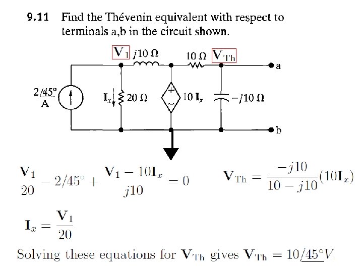 9. 8 The Node-Voltage Method Example 9. 11 KCL at node 2 (1) Since (2) Two Equations and Two Unknown , solving