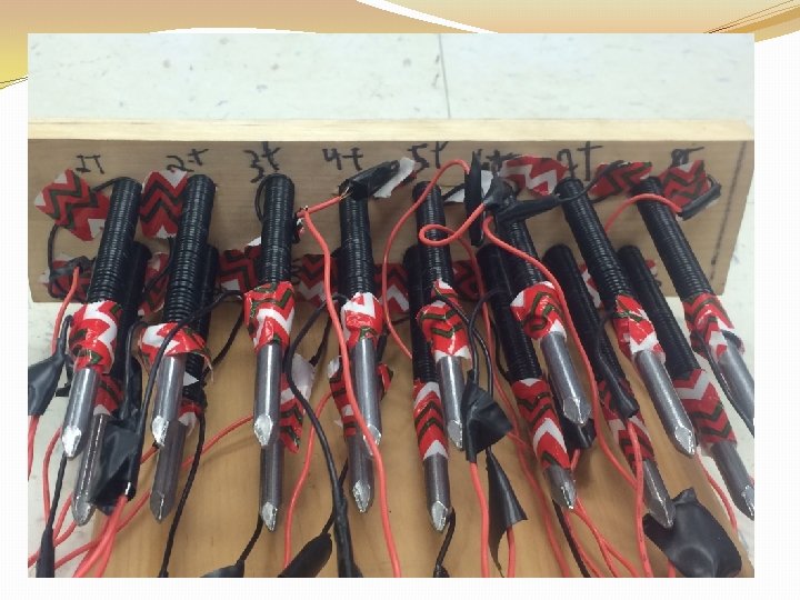 Materials q. Hammer q. Nails, iron, 6 inches (in. ) long. (16) q. Power drill q. Set of drill bits ranging from 1/16 of an inch to ½ inch q. Extra piece of scrap wood q. Wire, solid core 22 -gauge insulated, 300 -volt, 100 feet (ft. ) Wire strippers q. Rosin core solder