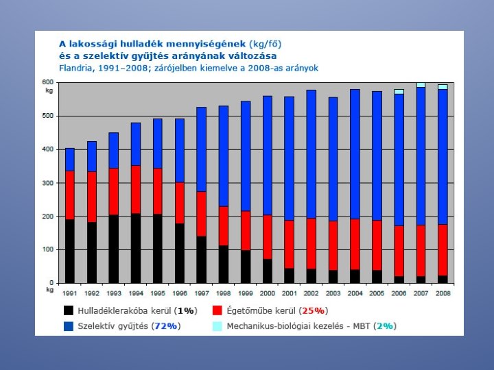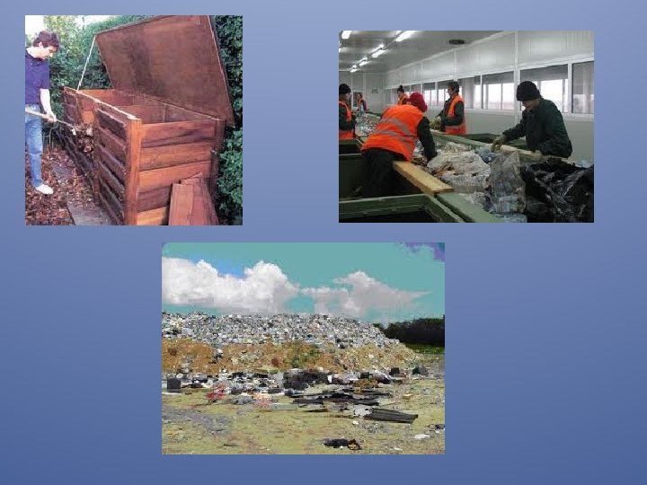 Az újrahasznosítás iránti igény • A jelenség attól vált kritikussá, hogy a korábbi méretű falusi gazdaságokkal ellentétben a városok nem tudnak mit kezdeni a saját maguk által termelt szennyel és szeméttel, az mérgezi a környezetet. • Első lépésként a városok igyekeznek az ivóvizet kímélni, a szennyezett folyadékokat nem a természetes vizekbe bevezetni, illetve a szilárd hulladékokat a hasznosítás és feldolgozás szempontjai szerint szétválasztva gyűjteni.