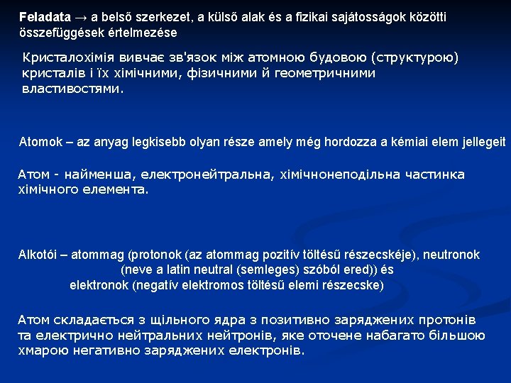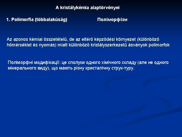2. Izomorfia (egyenlő alakúság) Azok az ásványok izomorfok, amelyek kémiailag különböznek, de külsőleg azonosak vagy nagyon hasonlóak Pl. albit (Na. Al. Si 3 O 8) → anortit (Ca. Al 2 Si 2 O 8) Наприклад. альбіт (Na. Al. Si 3 O 8) → анортит (Ca. Al 2 Si 2 O 8) Pl. forsterit Mg 2[Si. O 4], fayalit Fe 2[Si. O 4] Наприклад. Форстерит Mg 2[Si. O 4], файалит Fe 2[Si. O 4]