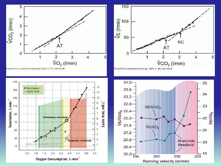 A VO 2 és VCO 2 számítása VO 2 és VCO 2 mennyiségi meghatározás (STPD) Wasserman et al. , 1994 VCO 2 = (VE * FECO 2) - (Vi* Fi. CO 2) A szervezet 1 perc alatt hány liter CO 2 -t távolít el (liter/perc) Wilmore and Costill, 1973 VO 2 = (Vi* Fi. O 2) - (VE*FEO 2) VE = VTex * BF VE = kilégzési térfogat * légzésszám A szervezet 1 perc alatt hány liter O 2 -t vesz fel (liter/perc) A teljes légzési ciklusra (belégzési + kilégzési idő) vonatkoztatva VE: kilélegzett levegő térfogata liter/perc Vi: belélegzett levegő térfogata liter/perc Fi. O 2, Fi. CO 2: belélegzett levegő O 2, CO 2 koncentrációja ml/100 ml FEO 2, FECO 2: kilélegzett levegő O 2, CO 2 koncentrációja ml/100 ml