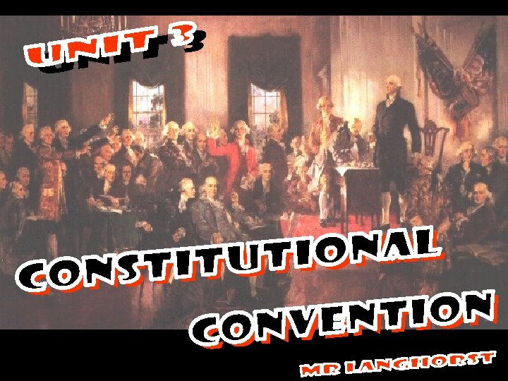 A total of 12 states sent delegates to Slides: 19 Download presentation A total of 12 states sent delegates to the convention Rhode Island is the only state that refused to send any delegates Delegates had to make a choice: 1)Fix the Articles of Confederation 2) Write a new form of government The delegates decided to write a new plan of government Challenge was to create a strong national government but one that would not overpowering The Constitutional Convention was held in 1787 the summer of _____ in the city of PHILADELPHIA _________. CONSTITUTION HALL - PHILADELPHIA NATIONAL ARCHIVES – WASHINGTON DC HOME OF THE UNITED STATES CONSTITUTION TODAY 55 delegates There were ____ at the Constitutional Convention. _________ JAMES MADISON read more than 100 books in preparation for the convention. THOMAS JEFFERSON and ___________ JOHN ADAMS were not at the convention because they were overseas at the time. PATRICK HENRY refused _________ to attend the convention because he “smelled a rat” leading toward monarchy. GEORGE _______ WASHINGTON _______ came out of retirement for the convention. BEN FRANKLIN was a ________ famous scientist and statesman, gave wit and wisdom to the convention. JAMES MADISON _________ is known as the “Father of the Constitution” and took detailed notes. GEORGE ________ WASHINGTON ________ was chosen as president of the convention.