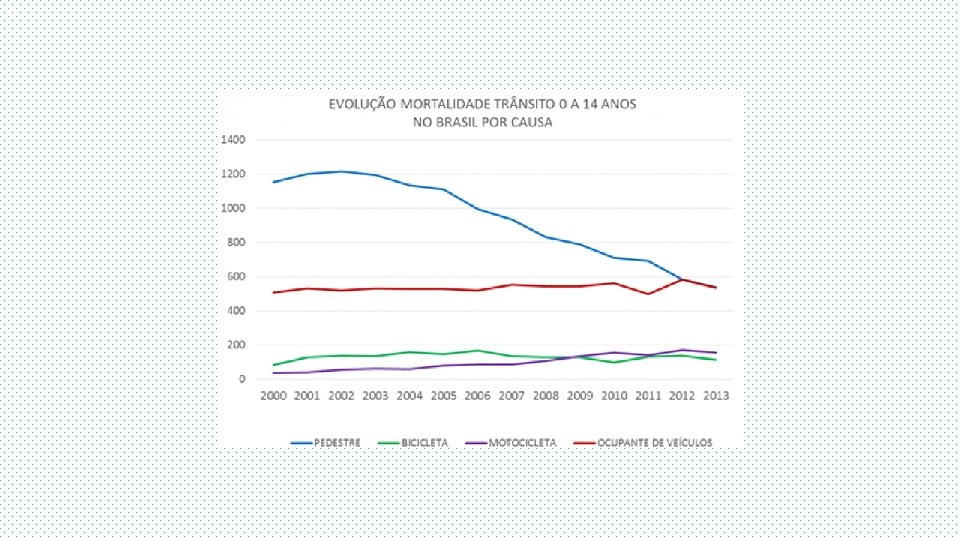Considerando-se a faixa etária de 5 -14 anos, a morte decorrente de ferimentos provocados pelos acidentes de trânsito é a primeira entre todas as mortes por causas definidas na maioria dos países das Américas, incluindo o Brasil.