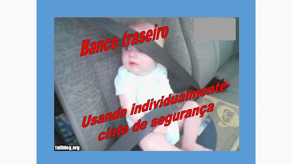 Se utilizarem apenas o cinto de segurança do veículo apresentarão acréscimo de: 78% no risco de sofrer ferimentos graves 79% de chance necessitar hospitalização