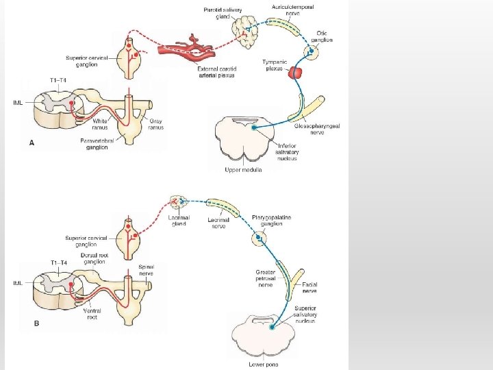 ggl. pterygopalatinum és ggl. submandibulare (n. facialis (VII. ) nucl. salivatorius sup. ) ggl. oticum (n. glossopharyngeus (IX. ) - nucl.