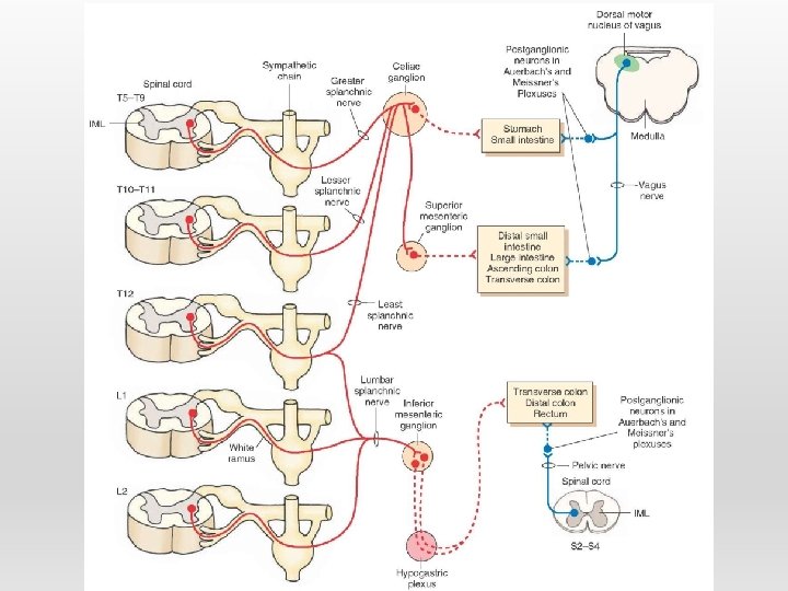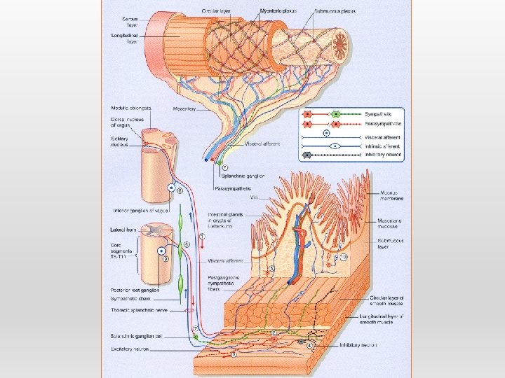 bélfal szimpatikus beidegzése, bélfal saját neuronhálózata (plexus submucosus (Meissner), plexus myentericus
