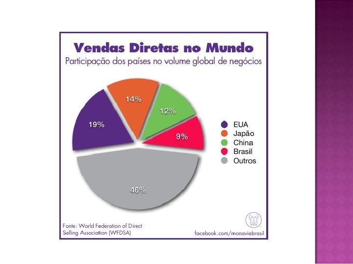 Para você ter uma ideia, no Brasil esse mercado conta com mais de 4, 5 milhões de pessoas em sua força de vendas, movimenta mais de 40 bilhões em volume de negócios por ano e gera mais de 8 milhões de empregos diretos. No ranking da World Federation of Direct Selling Associations (WFDSA) – Entidade que representa a indústria de Vendas Diretas, atrás apenas dos Estados Unidos, Japão e China. Afirmamos que é um mercado em franco crescimento e em busca de pessoas empreendedora como você.