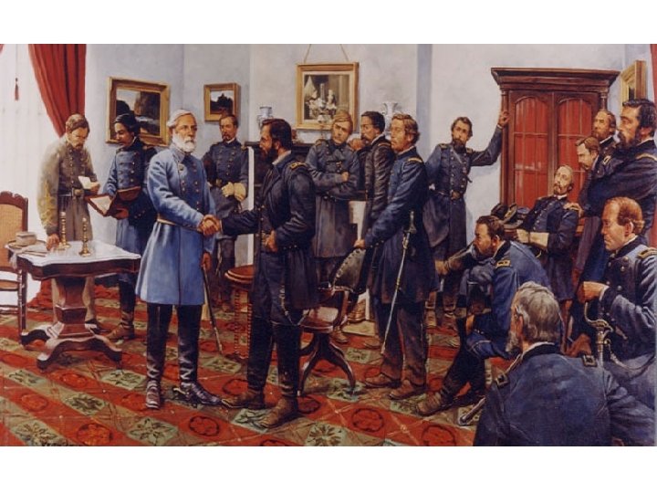 • After General Robert E. Lee’s surrender at Appomattox in April 1865, the Union and Confederate armies were peacefully disbanded.