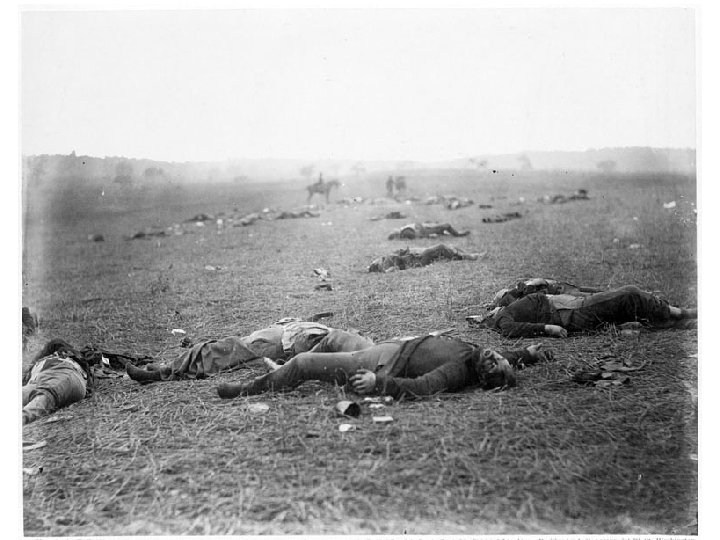 • One particularly disturbing photograph of soldiers who had died in battle at Gettysburg was published with the title “A Harvest of Death. ”