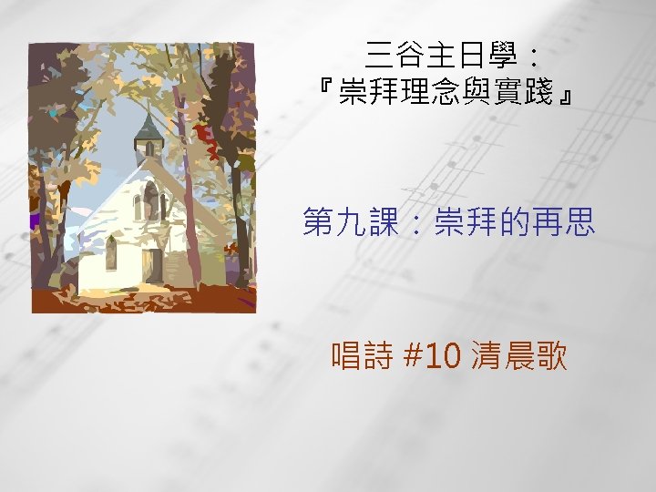 建議參考書籍: Warren Wiersbe, Real Worship: Playground, Battle Ground, or Holy Ground, 2 nd ed. , Baker Book, 2000 Donald Hustad, True Worship, Hope Publishing, 1998 John Frame, Worship in Spirit and Truth, P & R Publishing, 1996 John Frame, Contemporary Worship Music, P & R Publishing, 1997 Dan Lucarini, Why I Left the Contemporary Christian Music Movement, Evangelical Press, 2002 陳康, 【崇拜多面體】基道出版, 2006