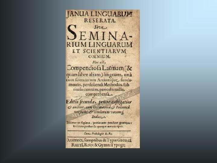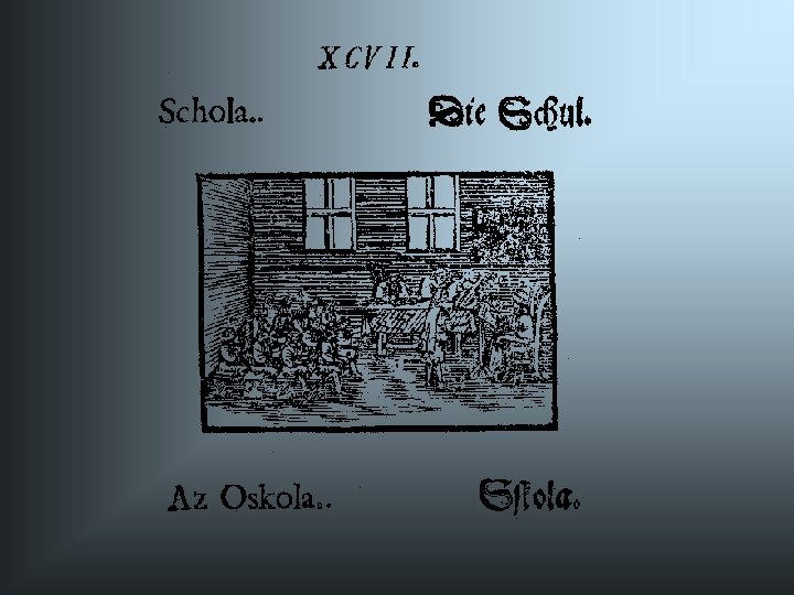 Comenius iskolakoncepciója • Anyaiskola (0 -6) • Anyanyelvi iskola (6 -12) • Latin iskola (12 -18) • Akadémia (18 -24)