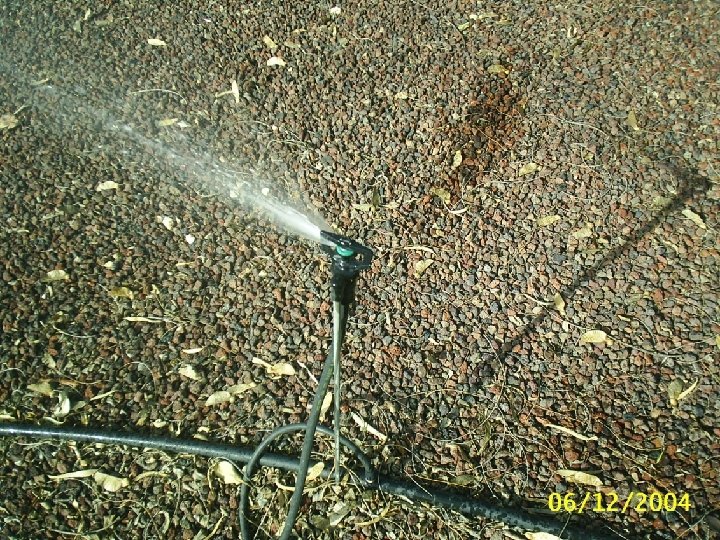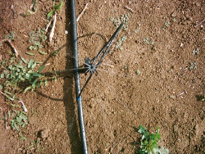 AĞAÇALTI MİKRO YAĞMURLAMA SULAMA YÖNTEMİ Yağmurlama sulama yönteminde de değinildiği gibi, meyve bahçelerinin sulanmasında küçük yağmurlama başlıklarından yaygın olarak yararlanılmaktadır. Küçük yağmurlama başlıklarının kullanıldığı yağmurlama sulama yöntemine ağaçaltı mikro yağmurlama sulama yöntemi adı da verilmektedir. Sistem unsurları, damla sulama sistem unsurları ile aynıdır. Tek fark, damlatıcılar yerine küçük yağmurlama başlıklarının kullanılmasıdır. Başka bir deyişle, ağaçaltı mikro yağmurlama sulama sistemi; pompa birimi, kontrol birimi, ana boru hattı, manifold boru hatları, lateral boru hatları ve küçük yağmurlama başlıklarından oluşur. Bu yöntemde, her ağaç sırasına bir lateral boru hattı döşenir ve lateral boyunca her ağacın altına bir yağmurlama başlığı konur. Ağaçaltı mikro yağmurlama sulama sistemi unsurları Şekil 8. 1 de görülmektedir.