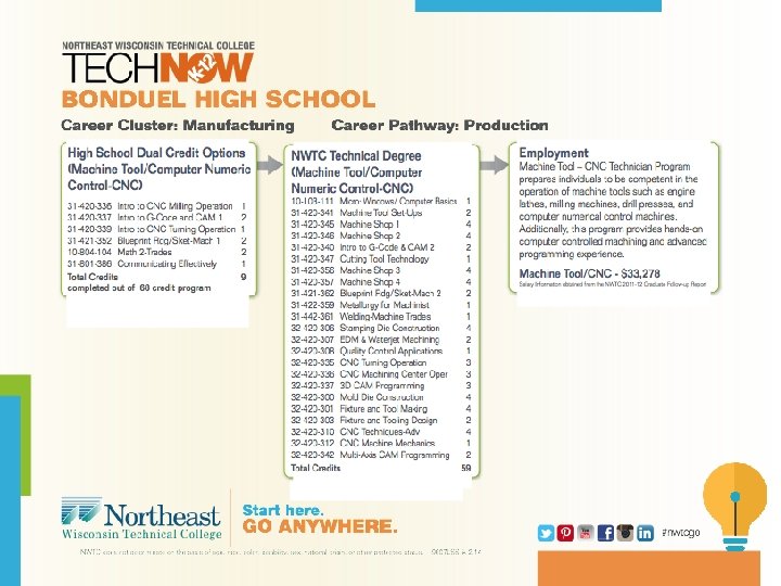 Bonduel: Growth of Manufacturing Pathway • Partnership with NWTC impacts students and teachers • • Community response to partnership Business and industry response to partnership Advice to other secondary professionals Meaningful support and trust of Administration • •