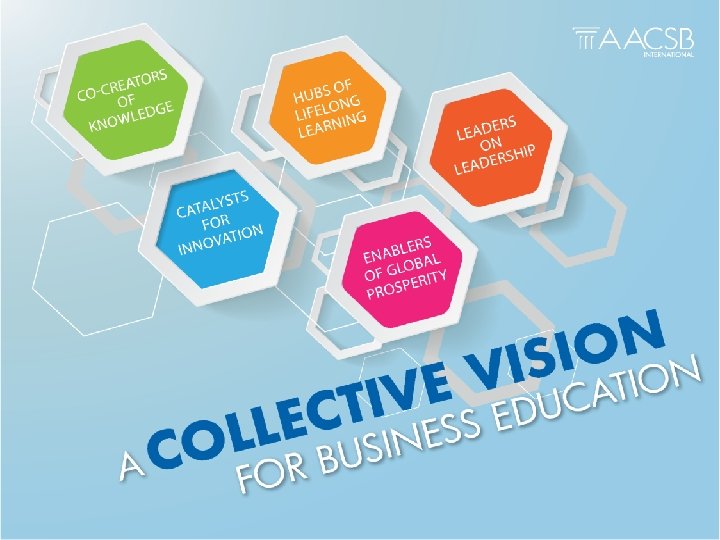 Visit www. aacsb. edu/vision Download the report Explore the resources to help you communicate about the Collective Vision Attend sessions around the Collective Vision at AACSB Events Join the conversation @ #AACSBenvisions