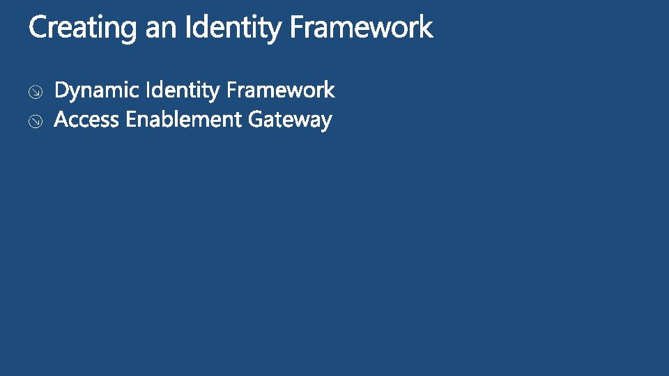One Day 1 -3 Day Workshops Education 2 Week Assessment and Roadmap Assess Business Assess Infrastructure Identity Solutions Planning Define Roadmap Deployment Microsoft Services Identity Offerings Include: • • Traditional IT TECHNOLOGIES Enterprise Identity Management using Forefront Identity Manager 2010 Enterprise Identity Federation using Active Directory Federation Services Access Enablement Gateway and Identity Service Solution Application Identity Assessment for Windows Azure Private Public Hybrid DESIRED END STATES Partners