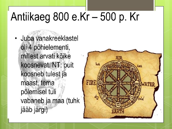 Antiik ajal aatomist. Atomistika pärineb vanakreeka filosoofiast. Aine ehitust püüti kindlaks teha arutluste teel. Näiteks Anaxagoras pidas ainet lõputult jagatavaks. Leukippos ja tema õpilane Demokritos aga leidsid, et see on loogiliselt võimatu. Seetõttu nad oletasid, et aine koosneb väikestest jagamatutest osadest, mida nad hakkasid nimetama aatomiteks ning mida nad eristasid neid ümbritsevast tühjusest. Kuigi aatomid on füüsiliselt jagamatud, on nad matemaatiliselt jagatavad ja neil on kuju. Leukippose järgi koosnevad kõik aatomid ühest ja samast ainest ning erinevad ainult kuju poolest. Demokritose järgi erinevad aatomid peale kuju ka mõõtmete pooles. Demokritose õpetuse võtsid osalt üle epikuurlased. Seda esitab muu hulgas Lucretius oma poeemis "De rerum naturae". Aristoteles atomistikat ei pooldanud. Seetõttu ei olnud atomistika antiikajal väga mõjukas ning vajus keskajal kristlikus maailmas (kuid mitte islamimaailmas) hoopis unustusse.
