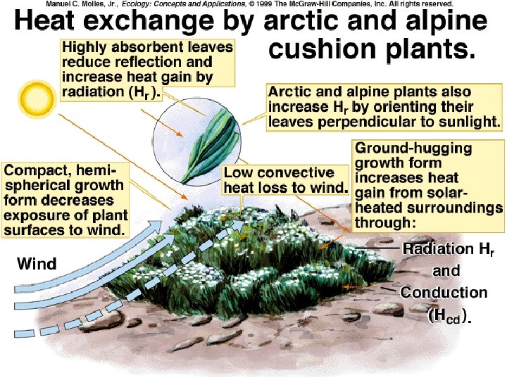 Temperature Regulation by Plants • Desert Plants: Must reduce heat storage. – Hs = Hcd + Hcv + Hr