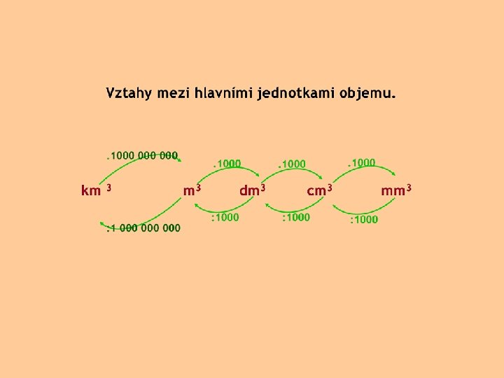 Převody jednotek objemu 1 1) 3 200 m 3 =32 000 0, 044 2) 44 l = 3) 0, 15 m 3 = 150 000 4) 0, 009 m 3 =9 000 5) 750 mm 3 = 0, 75 6) 600 cl = 0, 006 7) 5 400 cm 3 = 5, 4 0, 2 8) 2 dl = 1) 9 000 m 3 = 90 000 hl 2) 65 l = 0, 065 m 3 3) 340 dm 3 = 340 000 cm 3 4) 0, 008 m 3 = 8 000 mm 3 5) 0, 5 cm 3 = 500 mm 3 6) 230 ml = 0, 23 dm 3 7) 700 cl = 0, 007 m 3 8) 400 mm 3 = 0, 4 cm 3 hl m 3 ml mm 3 cm 3 l dm 3