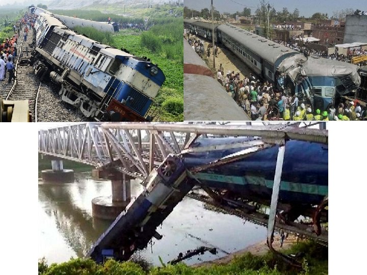 History of Railway Accidents • 1650, – United Kingdom – Whickham, County Durham. Two boys die when they are run down by a wagon on a wooden coal tramway. This is sometimes cited as the earliest known railway accident. • 5 November 1891 – A mail train derailed near Nagpur, killing 10 passengers and injuring 34 others. • In the 6 -year period between 2009 -10 and 2014 -15, there were a total of 803 accidents in Indian Railways killing 620 people and injuring 1855 people. 47% of these accidents were due to derailment of trains.