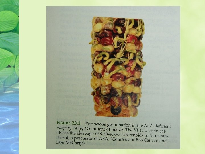 Further evidence for the role of ABA in preventing precocious germination has been provided by genetic studies of vivipary.