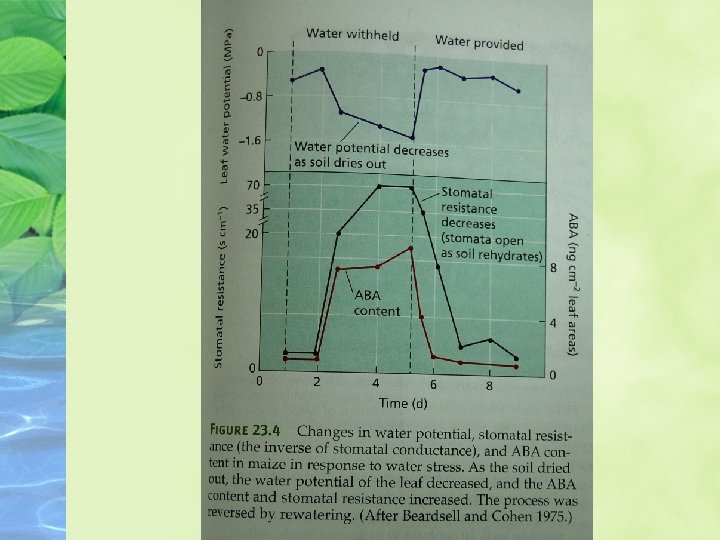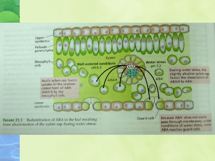 That ABA is redistributed in the leaf in this way without any increase in the total ABA level. Therefore, the increas in xylem sap p. H may function as a root signal that promotes early closure of the stomata.
