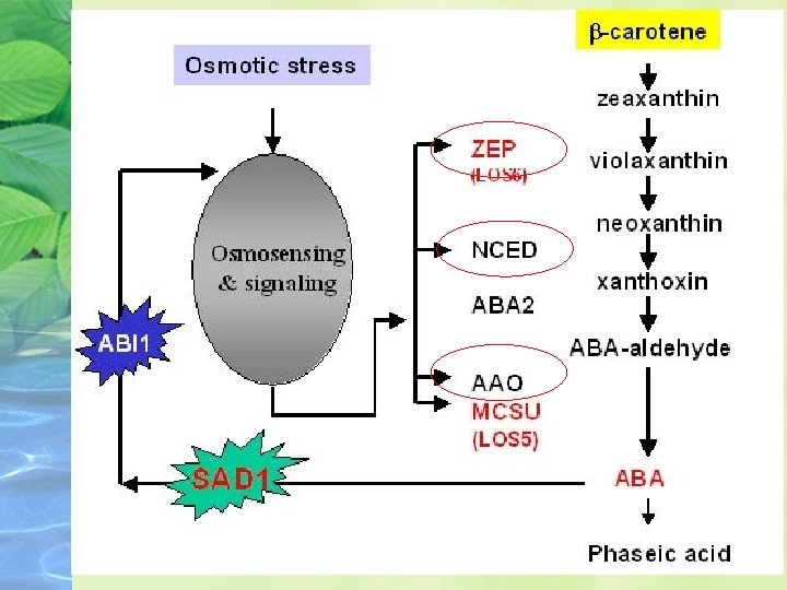 Biosynthesis, Metabolism, and Transport of ABA is synthesized from a carotenoid intermediate Biosynthesis takes place in chloroplasts and other plastids.