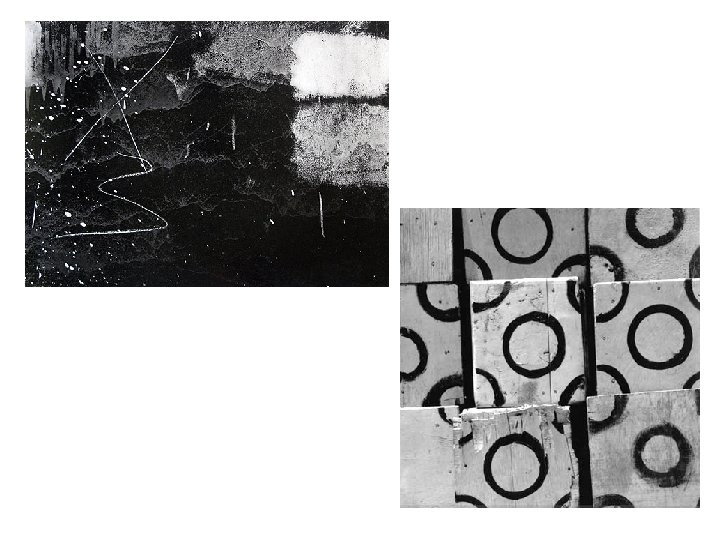 Aaron Siskind 1903 – 1991 American Arguably the most famous abstract photographer Travelled with abstract expressionists Wanted to mimic abstract paintings Peeling paint, posters, graffiti, texture on walls, tar on asphalt Leaves the viewer open to interpret the images themselves, without the photographer forcing meaning on the viewer