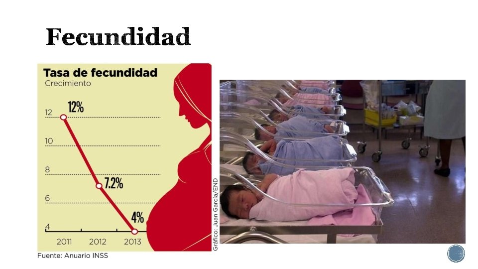 Desde la década de los años 80, mantiene una tendencia decreciente. La tasa global de fecundidad disminuyó de 7, 2 a 1, 76 hijos por mujer entre 1960 y el 2015, por debajo del nivel de reemplazo. Esta constante reducción de la fecundidad posiciona a Costa Rica en la última etapa de la transición demográfica. En el 2018 la población costarricense alcanzo los cinco millones de personas y aunque en términos absolutos la población sigue creciendo, cada vez lo hace a un menor ritmo