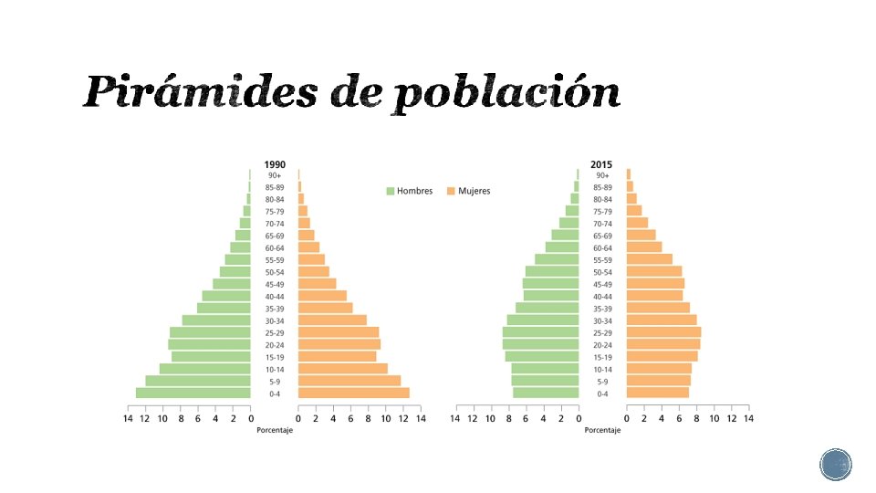 Las reducciones en las tasas de mortalidad y fecundidad implican un cambio en la estructura por edades de la población. En 1950, casi la mitad de la población tenía menos de 18 años, actualmente menos de una tercera parte (27%) se encuentra en ese rango de edad y se proyecta que para el 2070 representarán solo un 18% del total.