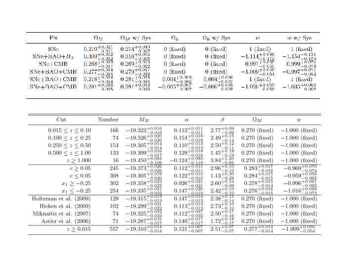 Union 2 Compilation: 557 SNe ¢ w=+/- 1 R. Amanullah et al. , Astrophys. J. 716, 712 (2010), ar. Xiv: 1004. 1711 [astro-ph. CO].