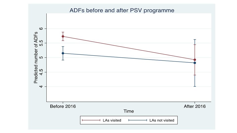 PSV: Cost-Benefit Analysis • Fires decreased in PSV-treated locations by. 81 per locality per month • From 5. 73 to 4. 92 • 4 fewer ADFs per 5 -month period • Cost of ADF: £ 51, 129 (Manchester New Economy Model) • Reduction in ADFs due to PSV: 51129*. 81*65 = £ 2, 691, 941. 85 • Total benefit: £ 2, 691, 941. 85 - £ 77, 544 = £ 2, 614, 397. 85