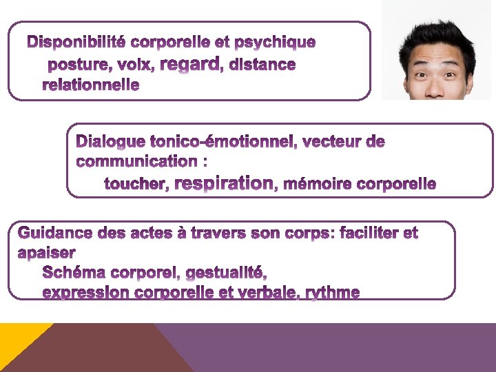AUTRES PISTES: SAVOIR FAIRE ET SAVOIR ÊTRE Savoir faire : § Aménagement d’un cadre sécurisant § Évaluation des capacités de la personne § Adaptation aux difficultés § Ritualisation § Préparation et organisation des activités à l’avance Savoir être : § Écoute et empathie § S’efforcer de respecter les initiatives du sujet § S’efforcer de rester patient § Penser à se préserver
