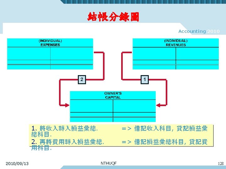 結帳分錄的過帳 Accounting 2010 1 2 3 2 4 2010/09/13 NTHUQF 137