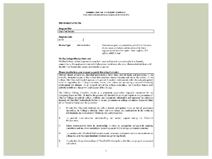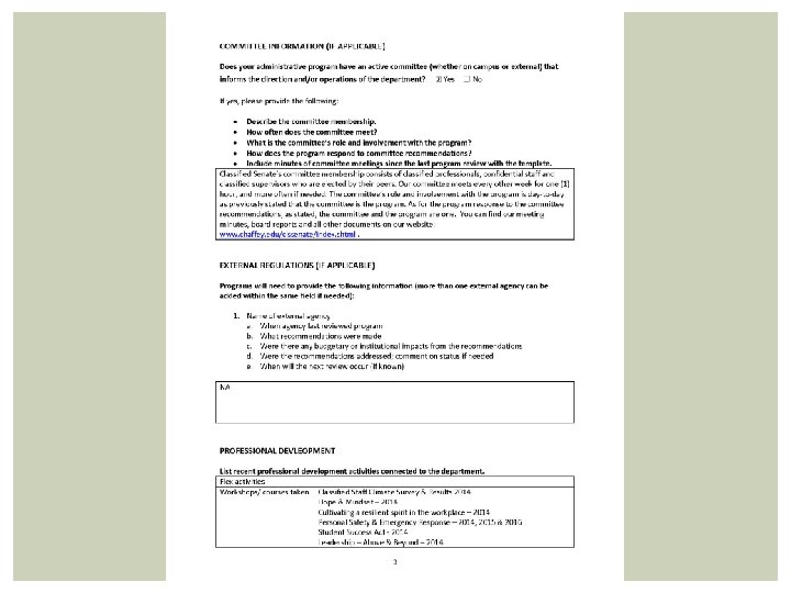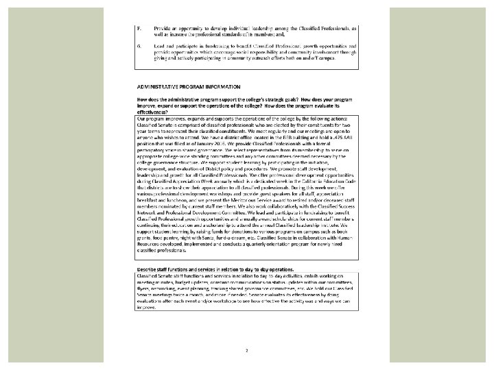 WHAT IS THE ROLE OF THE CLASSIFIED PROFESSIONAL? Everyone has a role in program review § In their department § On the committee § Tri-chair model