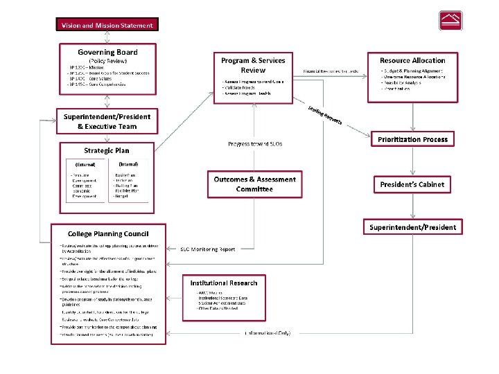 INTEGRATED PLANNING AND PROGRAM REVIEW What is the relationship between integrated planning and program review? § I. B. 9: The institution engages in continuous, broad based, systematic evaluation and planning. The institution integrates program review, planning, and resource allocation into a comprehensive process that leads to accomplishment of its mission and improvement of institutional effectiveness and academic quality. Institutional planning addresses short- and long-range needs for educational programs and services and for human, physical, technology, and financial resources.