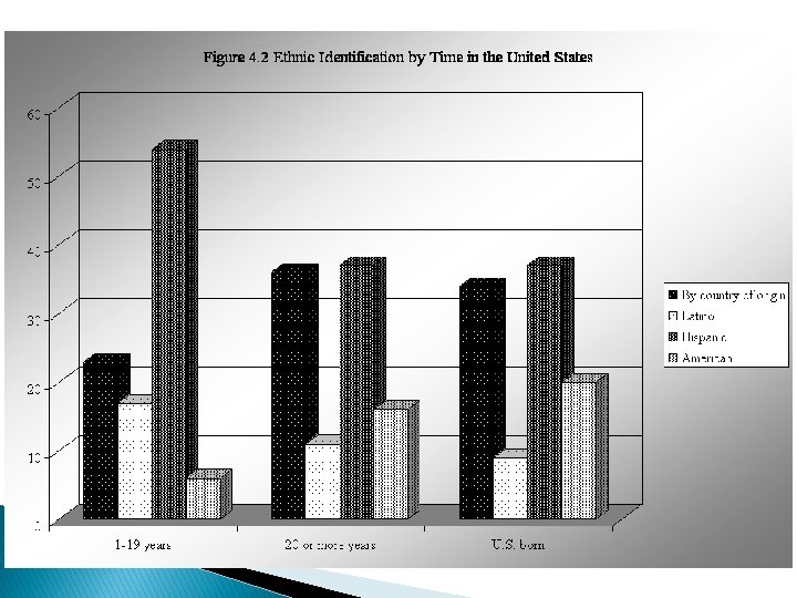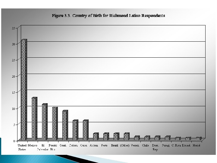 What ethnicity do you think of yourself as? � Hispanic: 42% � Latino: 13 � Gave 31 country of origin: � American: 14