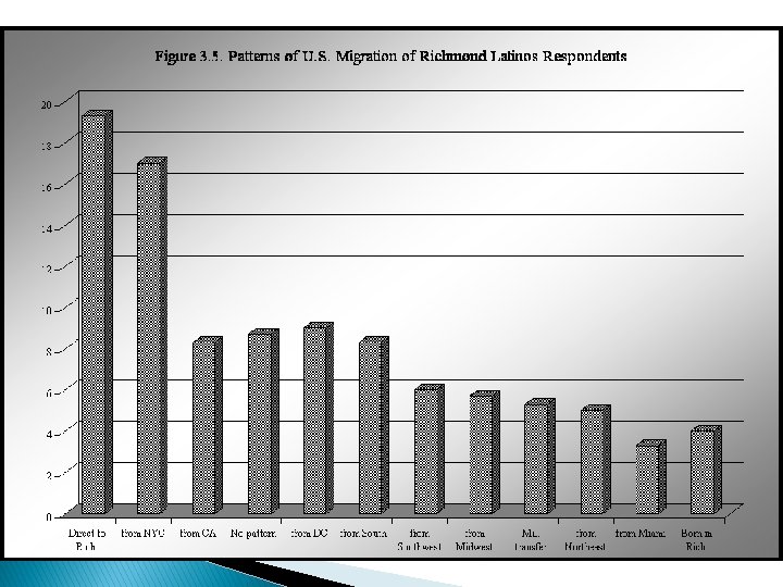 Fitting In: Latino Community Presence Emphasis on Symbolic Ethnicity (Mary Waters, 1990) Two Chambers of Commerce American Hispanics of Richmond Association (AHORA) La Asociacion de Hispano-Americanos de Richmond (AHAR) Pan-ethnic identity or “generic” label ?