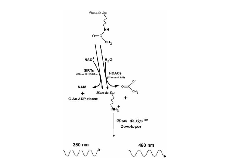 Sir 2 (histone deacetylase) has been shown as one longevity gene in yeast. Could we identify small chemicals as sir 2 activator ? High throughput screening needs a simple, automatic enzyme activity assay!