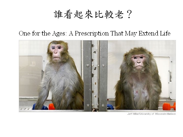 老化研究的挑戰 • Aging in laboratory animal is not equivalent to aging in wild animal