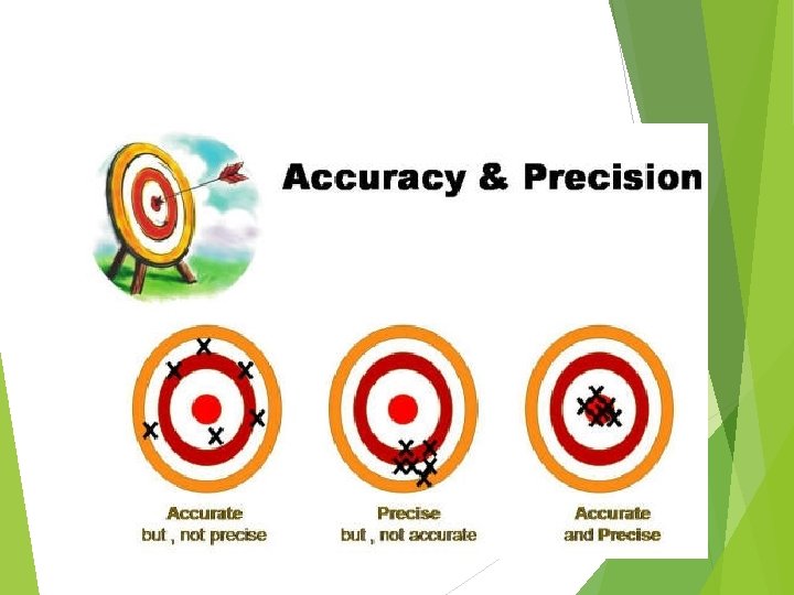 Three main types of error Systematic Errors (can be accounted for) Instrument Faults within the equipment for example equipment that has not been calibrated. Method Difference in the method between scientists. Human These are specific to the scientist for example lack of ability to see color changes. Random Error Cannot be controlled, accidental error