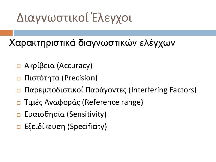 Διαγνωστικοί Έλεγχοι Accuracy - Precision Good accuracy, precision and trueness
