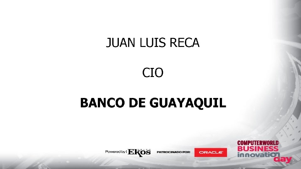 Aceleración Tecnológica y Procesos Innovadores: “PROYECTO NEO” Computerword Guayaquil 2017. Juan Luis Reca Vicepresidente O&T Banco Guayaquil