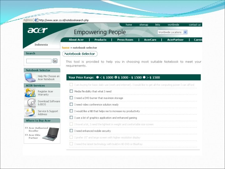 IT/ IS Strategy (2) IS Strategy Ø Adanya website resmi dari ACER untuk menunjang layanan terhadap Customer Ø Menambah Acer Elite Partner