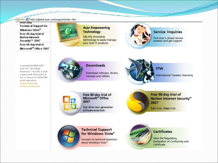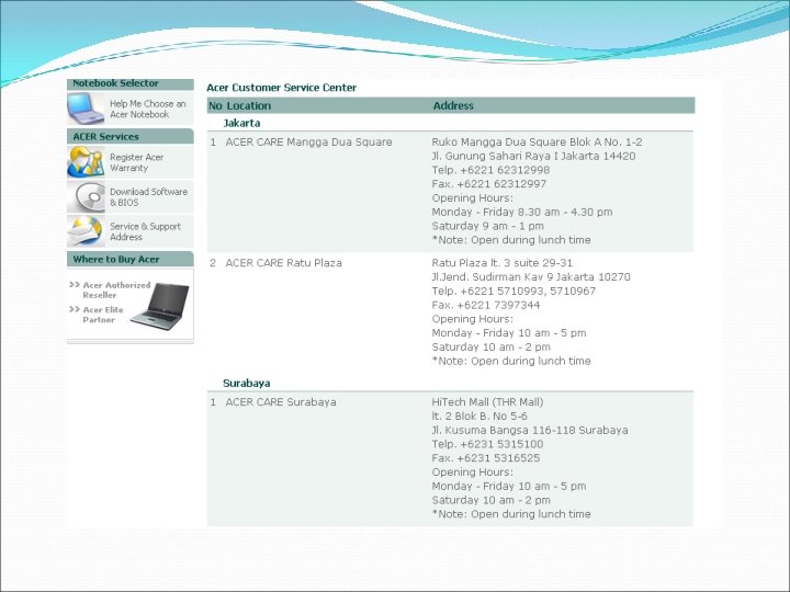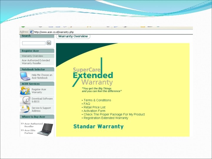 Website Resmi ACER Notebook selector Acer Service - Register ACER warranty - Dowmload Software & BIOS - Service and Support Address