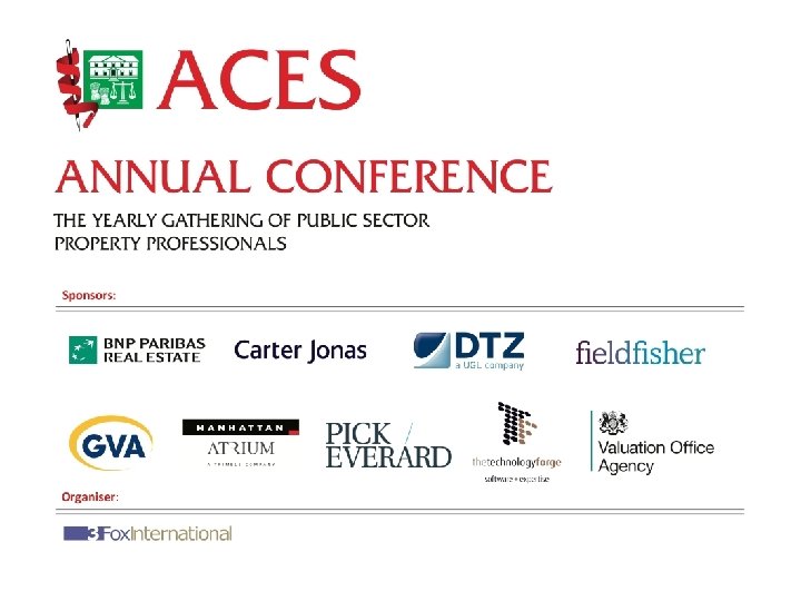 Property asset management • So in the period since 2007 the environment in which any organisation operates has changed considerably • Property is a powerful force in organisational change • Property assets are an important part of the way organisations support and enable transformation of service delivery • Property should be managed effectively to provide best value for services and customers • Property portfolios are a valuable resource, but can cost considerable sums to manage and maintain • Best value includes social, economic and environmental benefit Short title. Management here / November 2010 Workshop ACES Conference – Asset and Valuation Title presentation